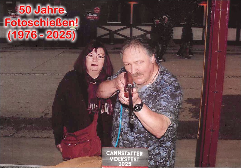 Foto-Galerie (Fotoschießen)Mit Bildern von eigenen "geschossenen" Fotos beim "Fotoschießen" auf dem Cannstatter Volksfest (VF) und Stuttgarter Frühlingsfest (FF) in den Jahren 1976 - 2025. (2020 u. 2021 Pause wegen Corona!!!) 50 Jahre Fotoschießen!!!Video (MP4): Bayrischer Rundfunk: Capriccio - TV Beitrag über Fotoschießen (Dauer: ca. 5 Minuten, Datum: 02.10.2025)Video (MP4): Bayrischer Rundfunk: Capriccio - Kurzer Ausschnitt über Fotoschießen von Erich Kohfink (Dauer: ca. 18 Sekunden, Datum: 02.10.2025)